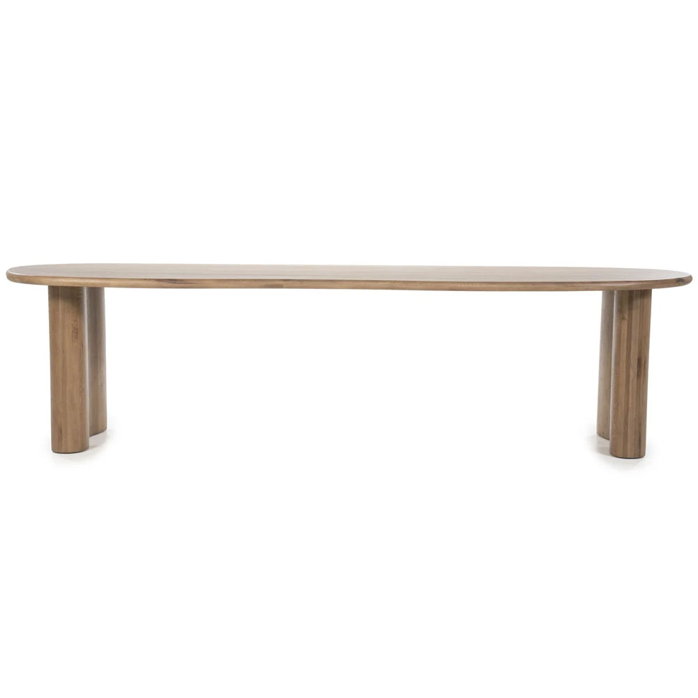 De tafel is vervaardigd uit hoogwaardig hout met een prachtig natuurlijk nerfpatroon, waardoor elke tafel uniek is. Het stevige onderstel zorgt niet alleen voor stabiliteit, maar geeft ook een stoere, eigentijdse touch aan het design.